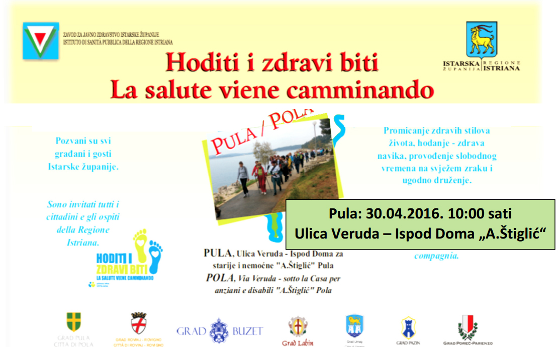 Hoditi i zdravi biti na stazi br. 3 ˝Koza˝ - VERUDELA dužine 6,5 km. Polazak u 10 sati u ulici Veruda ispod Doma umirovljenika ˝A.Štiglić˝.