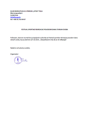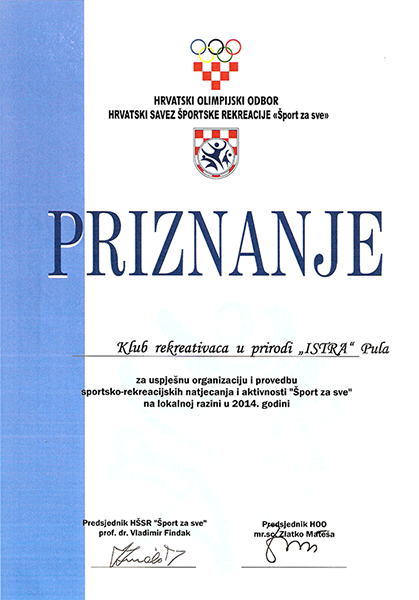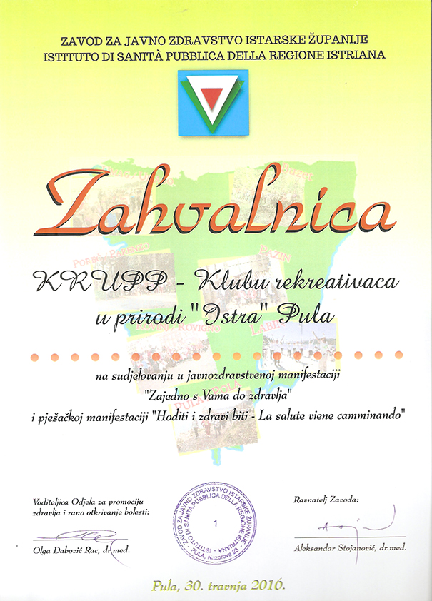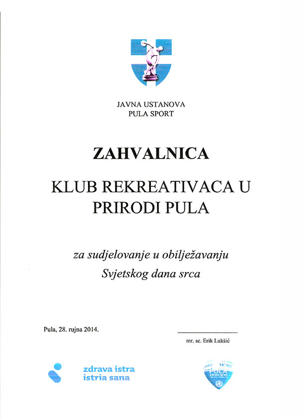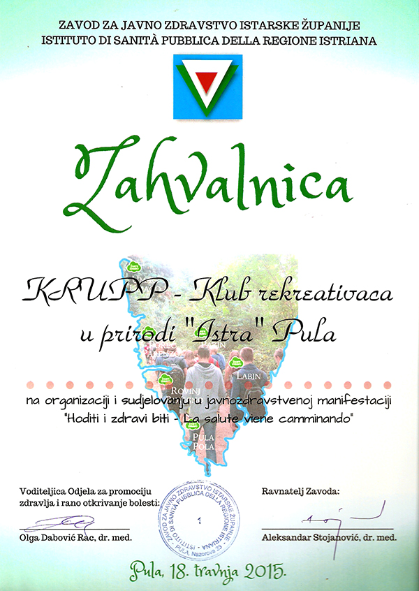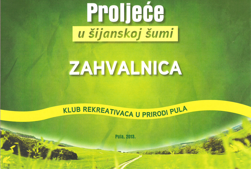 Svečanost povodom 20 godina postojanja i uspješnog rada Kluba rekreativaca u prirodi "Istra" Pula, održava se pod motom "Istra pješači u prirodi"! Svečani skup će se održati u subotu 30. ožujka 2019. s početkom u 11,00 sati na centralnoj poljani u Šijanskoj šumi. Predviđeno je okupljanje u ulici Šijanska cesta 1, kod uprave Šumarije u 10,30 sati i zajednički dolazak stazom do centralne poljane.