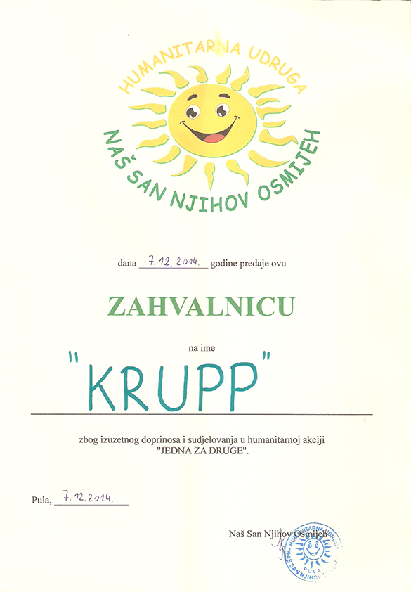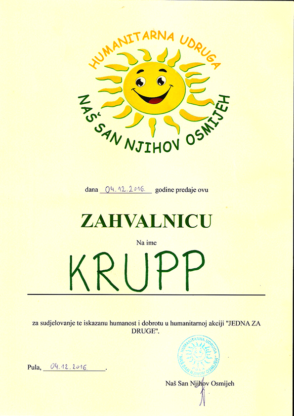 Godišnja Skupština Krupp-a održat će se 02. 03. 2018. god. u prostorijama Dom sportova „Mate Parlov“ Pula, na katu sala II, s početkom u 18 sati. Nakon svečane dodjele priznanja nastavit će se s prigodnim druženjem. Pozivamo sve članove da se odazovu.